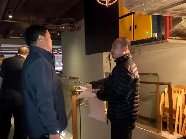 公司負(fù)責(zé)人陪同省大氣督察組袁團(tuán)結(jié)組長一行對餐飲企業(yè)油煙排放情況進(jìn)行巡查